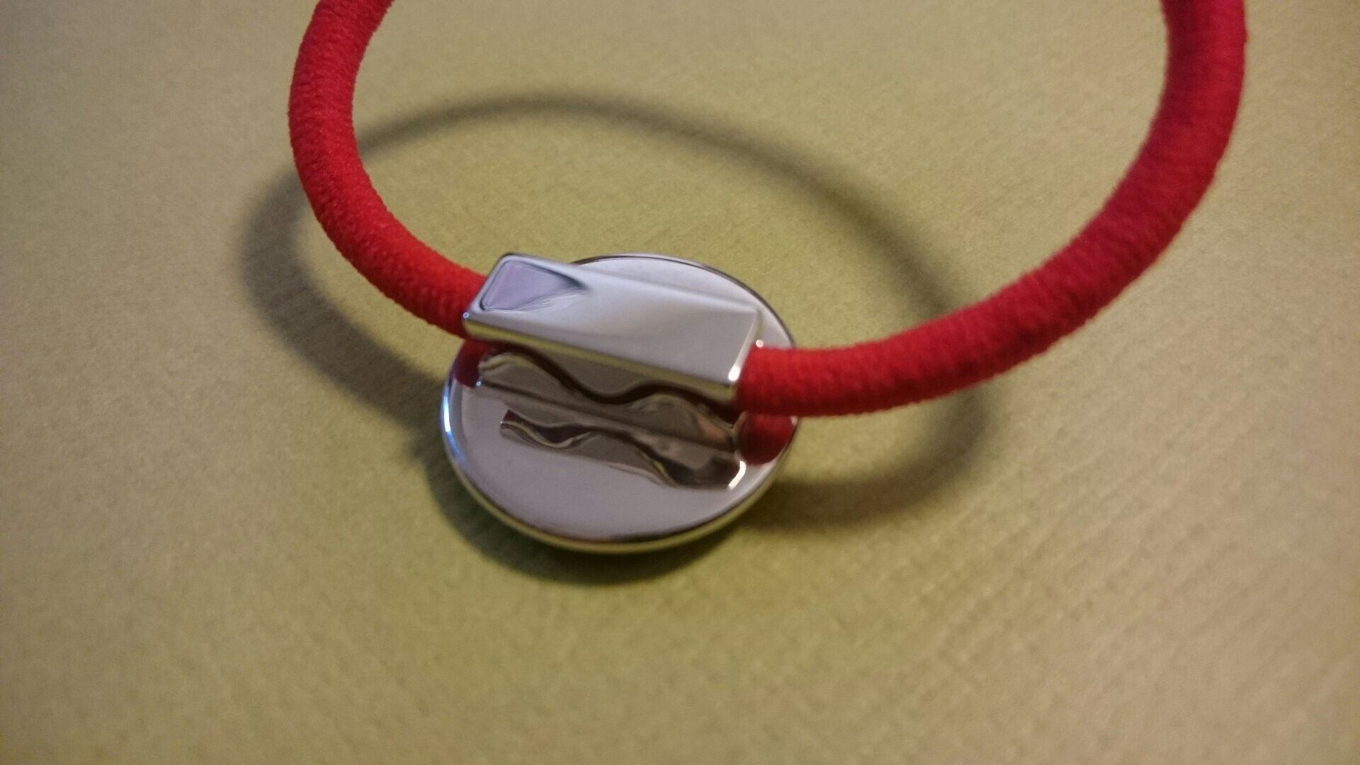ヘアゴムに着脱可能なシルバーアクセサリー。